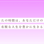 あなたの時間は、あなただけのもの|有限な人生を豊かに生きる